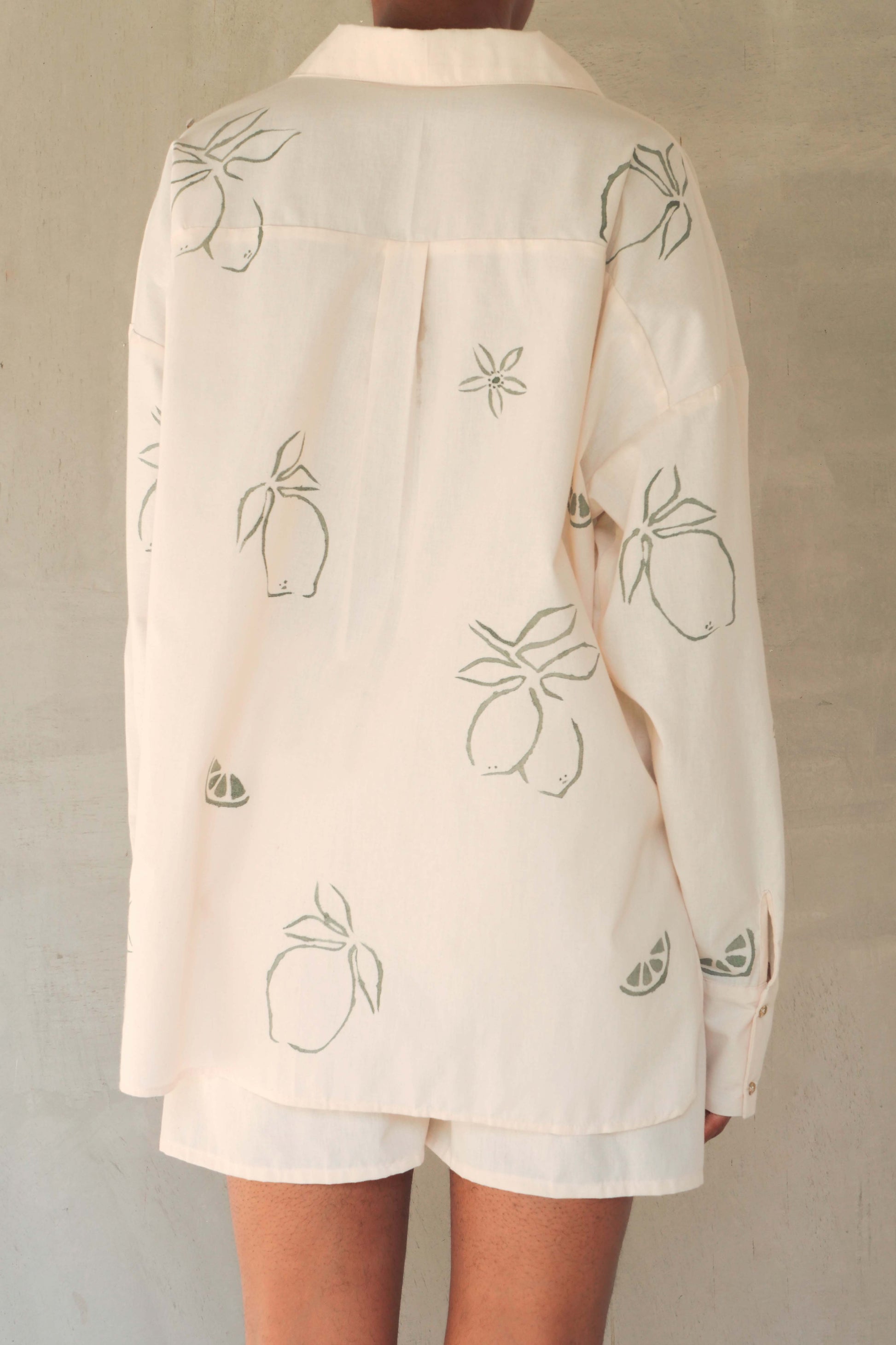 Chaque short est réalisé dans une popeline de coton bio cultivé sans produits chimiques. Sa teinte écrue naturelle provient de la fibre brute.